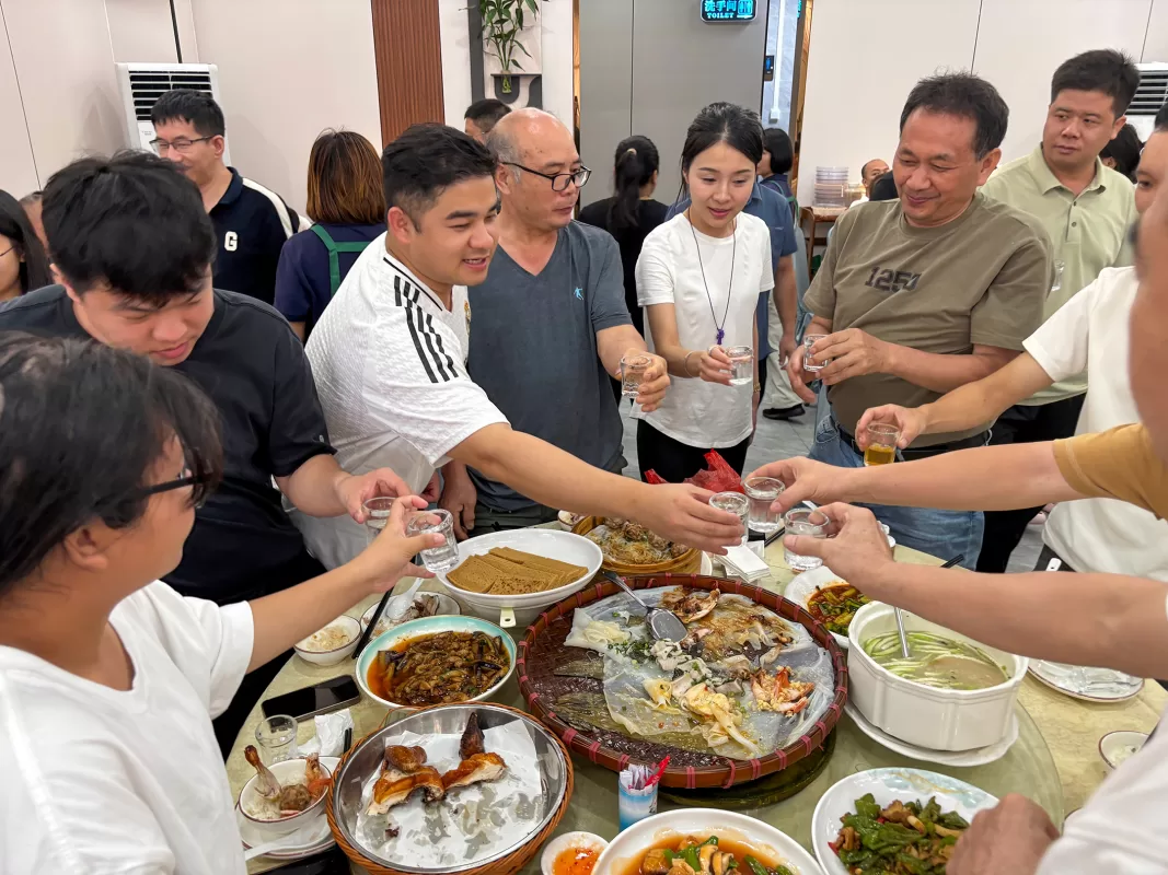 When the assembly whistle blew at 16:30, the setting sun gilded the park. On the way back, the conversations in the carriage still carried the lingering excitement: some recalled interesting stories of collaboration during the barbecue, some shared thrilling moments of the amusement rides. In the returning carriage, tiredness couldn’t hide the smiles in their eyes. When they arrived at the farmhouse, a sumptuous dinner was already waiting quietly. Under the lights, the table full of delicious dishes steamed with heat, and the clear sound of clinking glasses was accompanied by increasingly hearty laughter. Someone stood up to toast, grateful that the company had hidden care in every detail; someone talked about interesting things of the day, extending the tacit understanding into the toasts. There was no hierarchy, no distinction between departments—only the warmth of walking side by side and the shared expectation for the future—this is the most vivid form of Yuantian’s “people-oriented” principle.