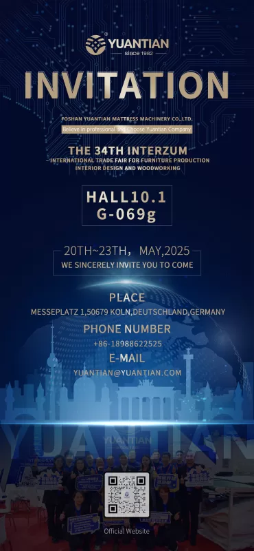 Dear partners from all sectors, the annual grand event of the global mattress manufacturing industry—the 34th Interzum Cologne Exhibition—is about to kick off on May 20! Yuantian Company is ready with “smart manufacturing hard power” and “one-on-one exclusive service,” waiting for your arrival!