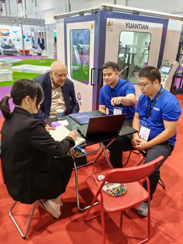 The excitement from the Dubai Expo lingers, and the impressive performance at Yuantian Booth S512 has become a focal point in the industry. On the first day, as the technical team completed the calibration of key exhibition machines, clients were drawn to the expertise of our intelligent mattress manufacturing line. This led to deep consultations and on-the-spot agreements, showcasing the “Yuantian Speed.” Throughout the expo, our booth remained busy and organized: the technical team, led by the General Manager, demonstrated equipment while the foreign trade team explained our flexible production line solutions. Even on the last day, clients visited to finalize collaborations, backed by our robust patented technologies.