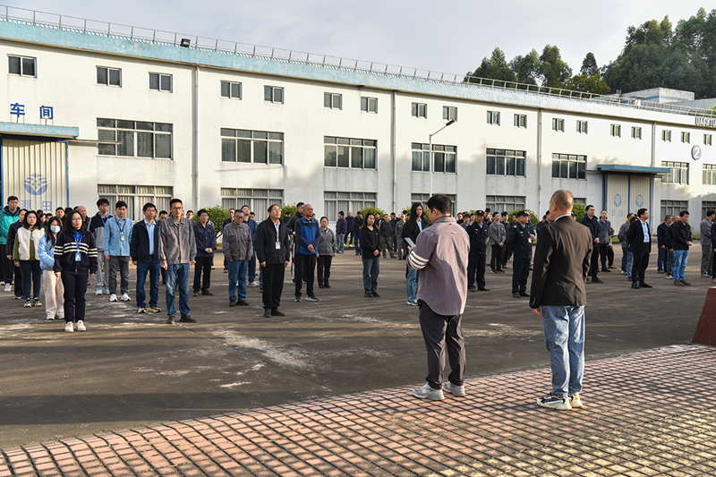 On the morning of November 28, 2025, the rising sun adorned the flagpole area of Yuantian Company with a solemn golden hue. As the national anthem played, the five-star red flag was raised, and all employees, dressed in neat uniforms, stood attentively in salute. Under the national flag, a safety seminar and practical training themed “Strengthening the Safety Defense to Support Production Development” infused this morning with a sense of responsibility and strength.