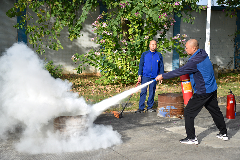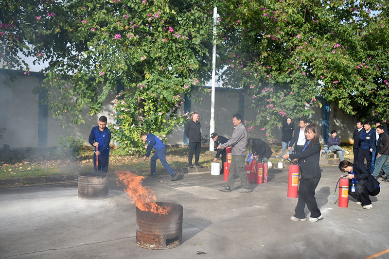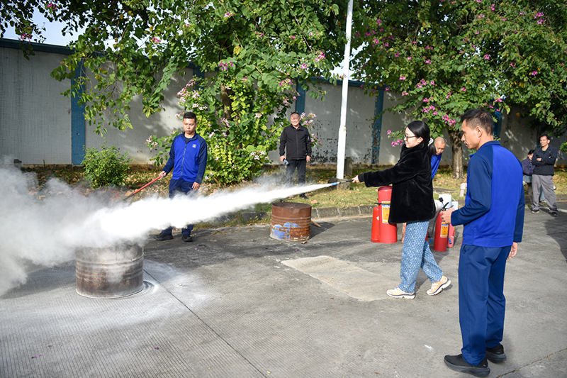 As soon as the demonstration ended, employees eagerly stepped forward to practice, maintaining an orderly yet enthusiastic atmosphere. Some employees took a bit longer to connect hoses, while nearby colleagues offered gentle reminders on techniques. Others needed corrections on their extinguisher handling, which Liu Ruwei promptly provided. From the earnest attempts of younger employees to the skilled maneuvers of veterans, each action reflected a deep respect for fire safety. Everyone learned from each other and supervised one another, transforming fire safety knowledge into practical skills, solidifying the safety defense through hands-on practice.From the solemn commitment under the national flag to proactive engagement in practice, Yuantian employees embody the principle of “safety first.” Safety production has no endpoint; Yuantian Company will take this event as an opportunity to regularly conduct safety training, embedding safety awareness in every position and building a solid safety barrier for the sustainable development of the enterprise and the well-being of its employees.